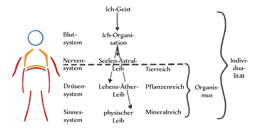 Abbildung 6: Die Viergliederung des Menschen und der Organismus als Leib der Individualität.